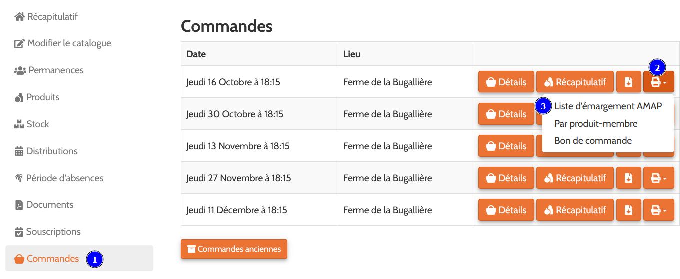 A la date de clôture de la commande ce récapitulatif est envoyé automatiquement au producteur comme “bon de commande”