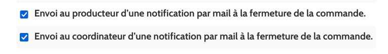 A la date de fermeture de chaque commande ( contrat AMAP Classique et variable ) le producteur et le coordinateur peuvent en option décider de recevoir une notification par mail